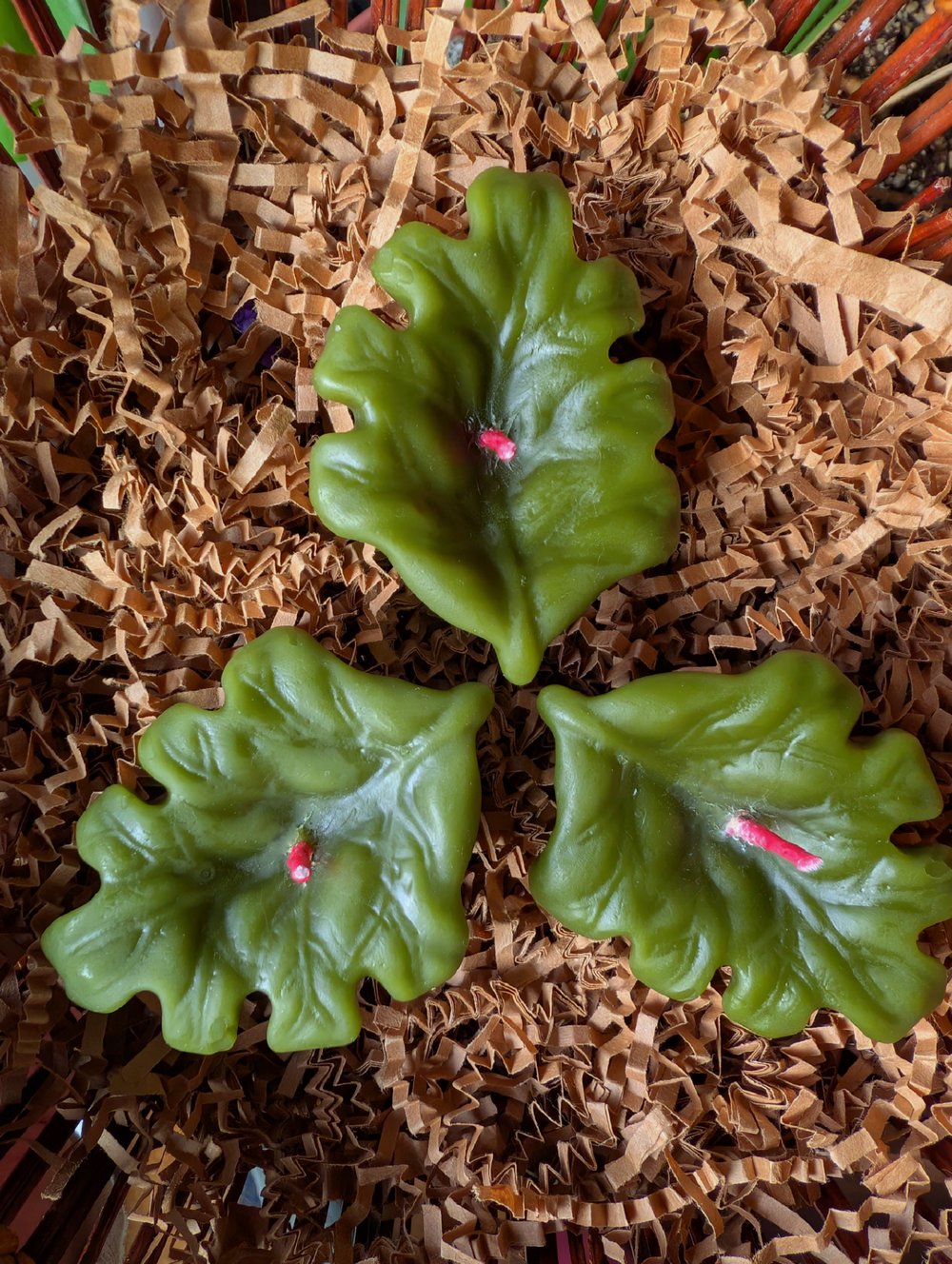 Floating Oak Leaf Tealight. 100% beeswax and unscented. Burns about 4 hours. Floats in water or burn on a plate.