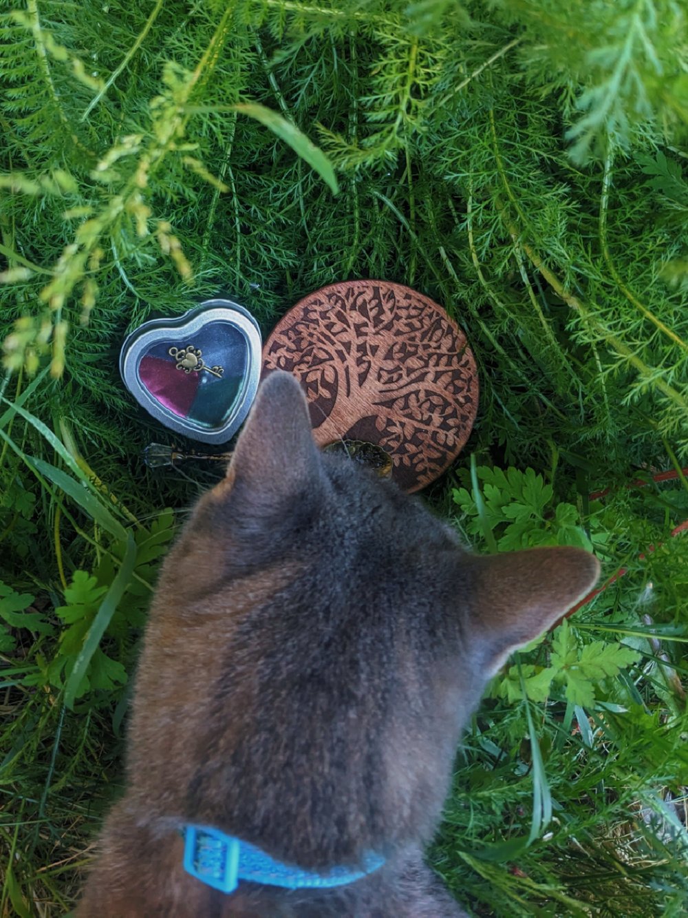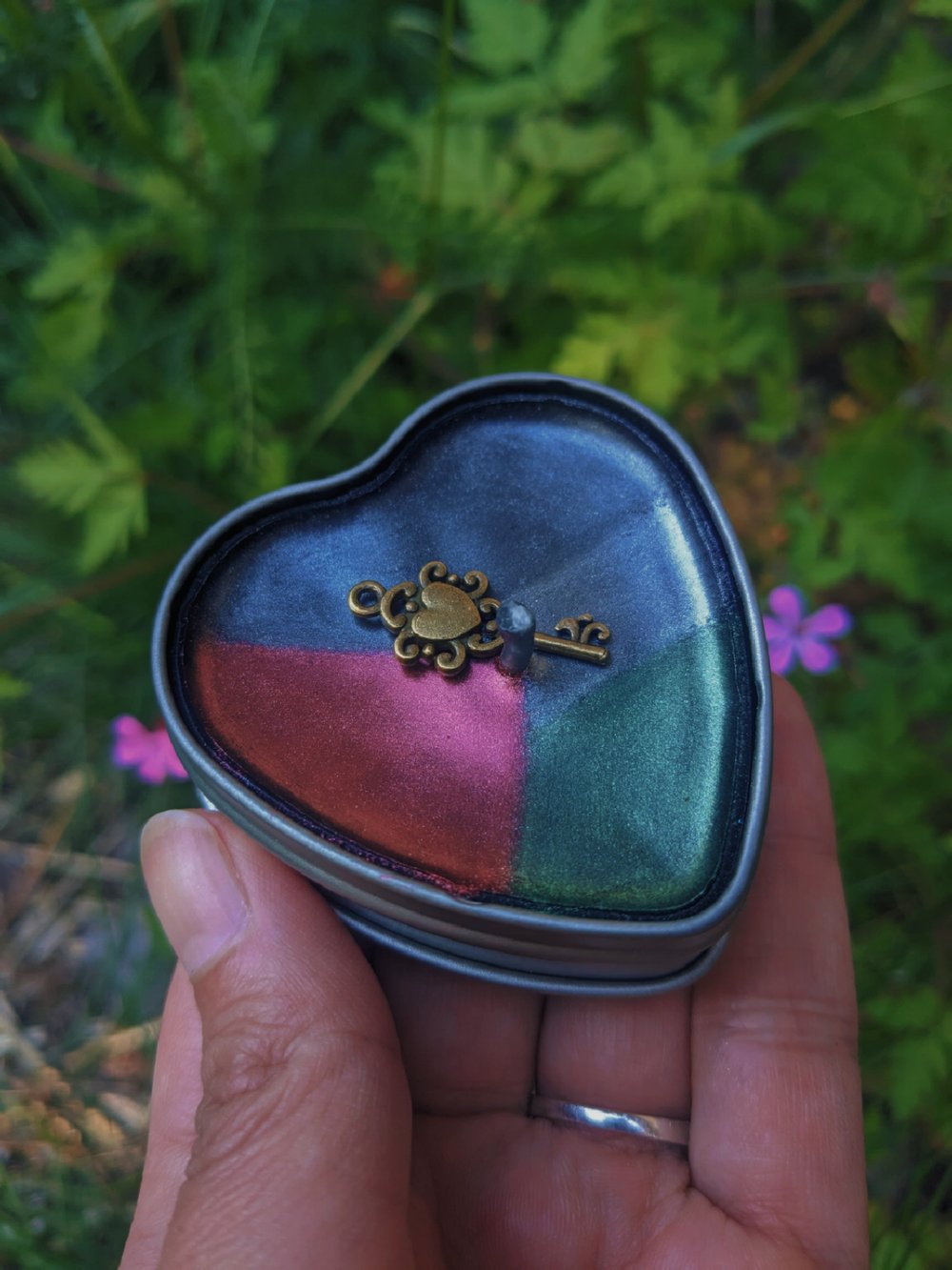 Set includes: a beeswax heart tin tealight candle, decorated with mica powder and a tiny copper key; a wooden tree of life coaster; tiny ritual spoon, made from zinc alloy and food safe.